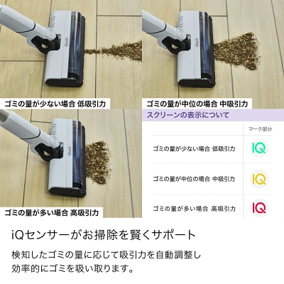 共通する「iQセンサー」については後の項で詳しく紹介したいと思いますが、ゴミの量を検知して吸引パワーを自動で替える賢い機能です。